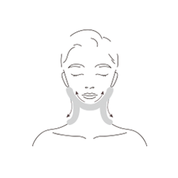 4. 用拇指和食指夹住面部轮廓线,向耳部轻轻滑动,轻轻按压耳后,并滑动至锁骨部位。