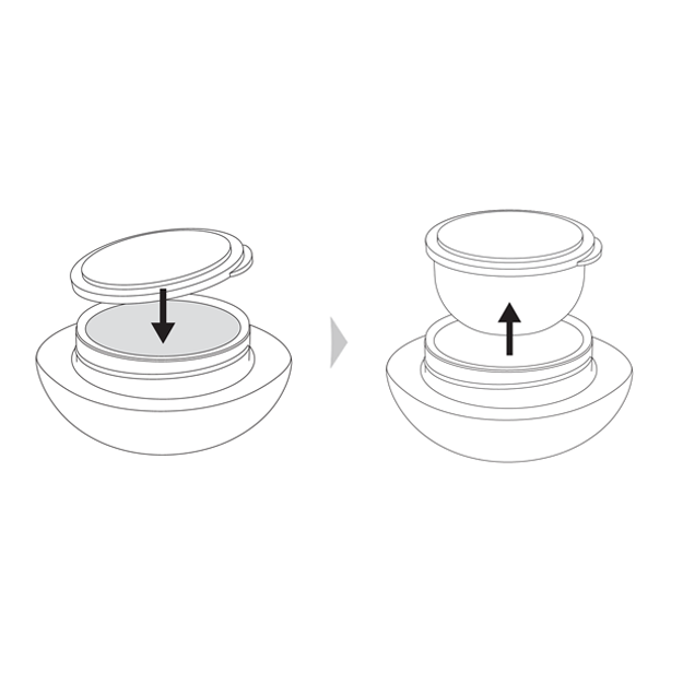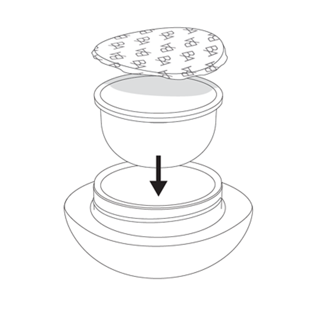 3. 揭下新替换装的封条。然后将其嵌入正装容器中。